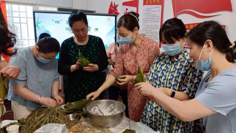 大家一齐动手,分工合作,有的负责切配料,有的负责洗粽叶,有的负责准备绳子等,从折粽叶、装米,到定型、缠线,大家相互帮助,经过共同努力,一个个漂亮的粽子成型,粽子香气飘散在活动现场。大家品尝着自己的劳动成果,每个人脸上都洋溢着喜悦与幸福。