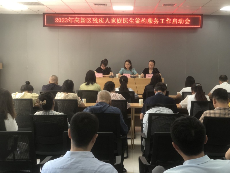 为满足残疾人基本康复服务,规范家庭医生签约服务工作流程,保证2023年精准康复残疾人家庭医生签约服务工作服务效率和服务质量。6月30日上午,高新区社会事业服务局组织召开2023年度残疾人家庭医生签约服务启动会。社会事业服务局相关业务部门、辖区各街道和承接签约服务的三家中心(卫生院)的各相关负责人和工作人员近60余人参加会议。