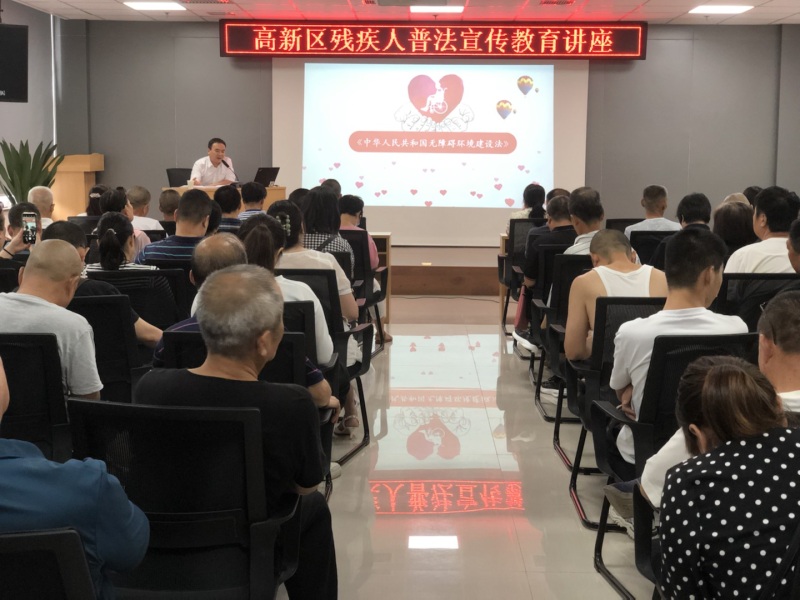 在第十四次全国肢残活动日来临之际,为强化残疾人群体法律意识,提升残疾人知法、懂法、用法的能力,通过合法途径维护自身合法权益。8月10日上午,高新区社会事业服务局组织各街道、村(社区)残疾人代表、残疾人工作者、助残志愿者110余人参加残疾人普法宣传教育讲座。